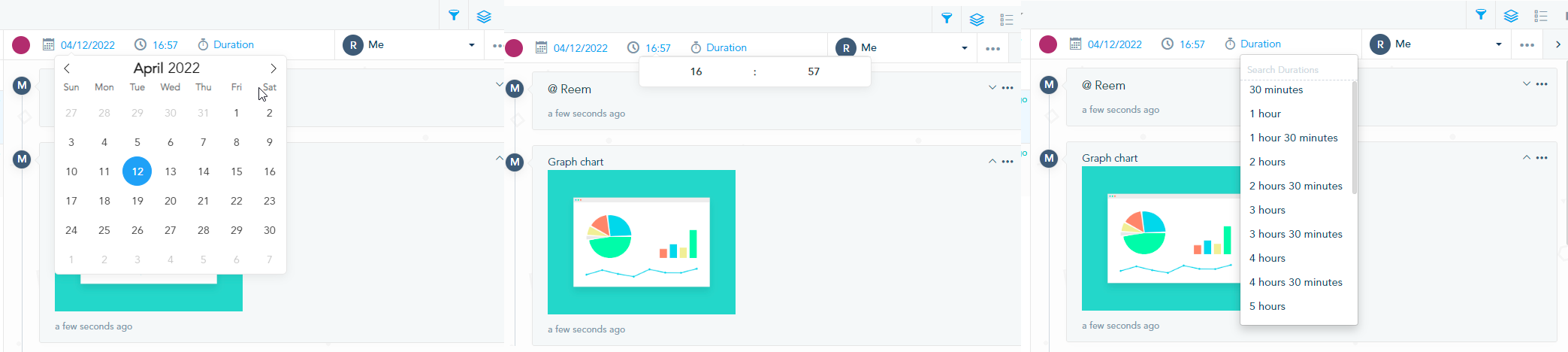 Click on the Date to Schedule Date, on the Time to Schedule Time, or on Duration to Set Duration.