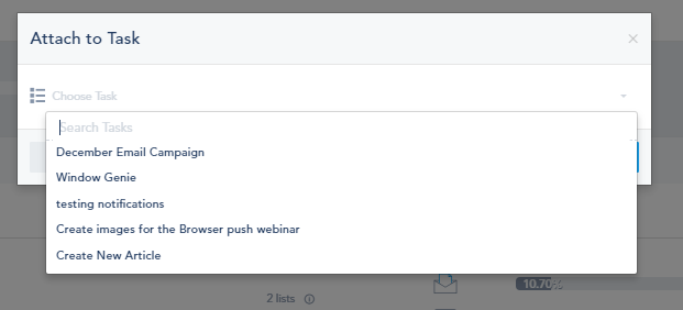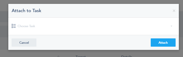 If you choose Add to Task, you will get the following, where you choose the Task you want to attach to: