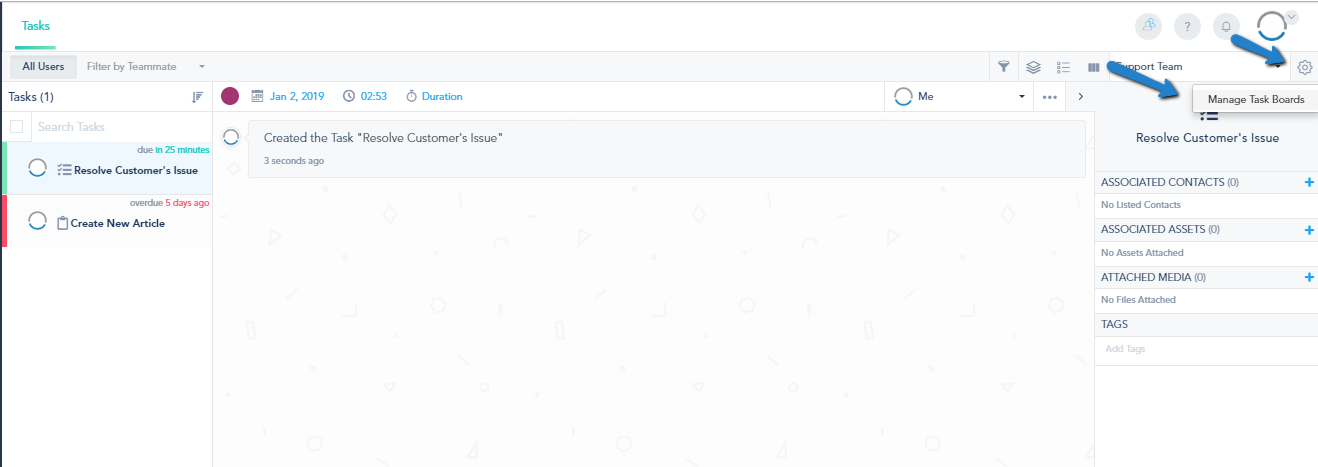 To Manage or Add Task Board, click on the Gear > Manage Task Boards: