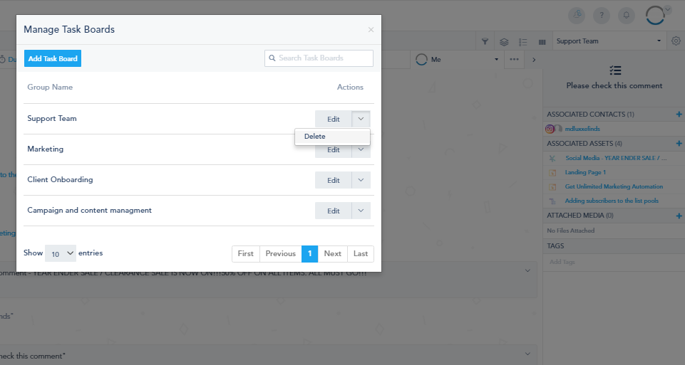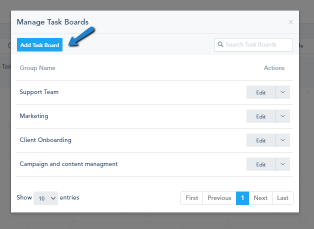 Click Add Task Board, or Edit if you want to update an existing Task Board; or the drop-down menu to Delete a Task Board: