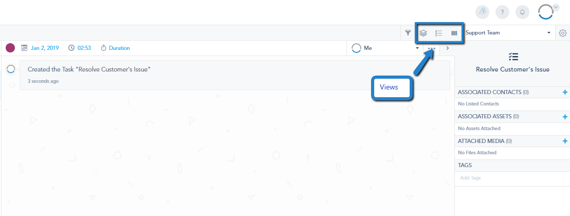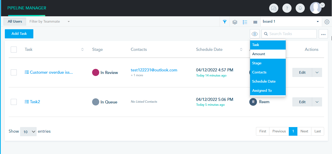 You can use the Task View option to Choose between List View, Table View, or Pipeline View.