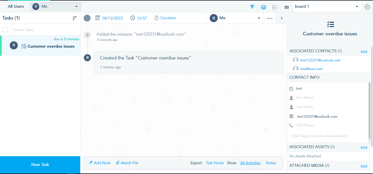 To filter the tasks by different team members, change the user from yourself, labeled Me, to another team member that was added from your Users page. To view all tasks click the All Users filter. To get a better visual display of your team members, we recommend they upload their profile photo to their account, which is available under their Settings.