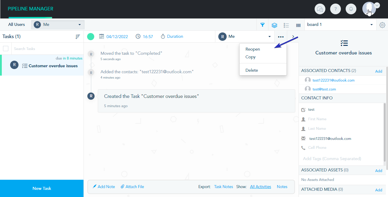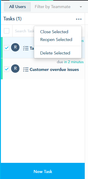 You can also perform batch Task Close, Reopen, or Delete by selecting multiple at the same time then choosing the action.