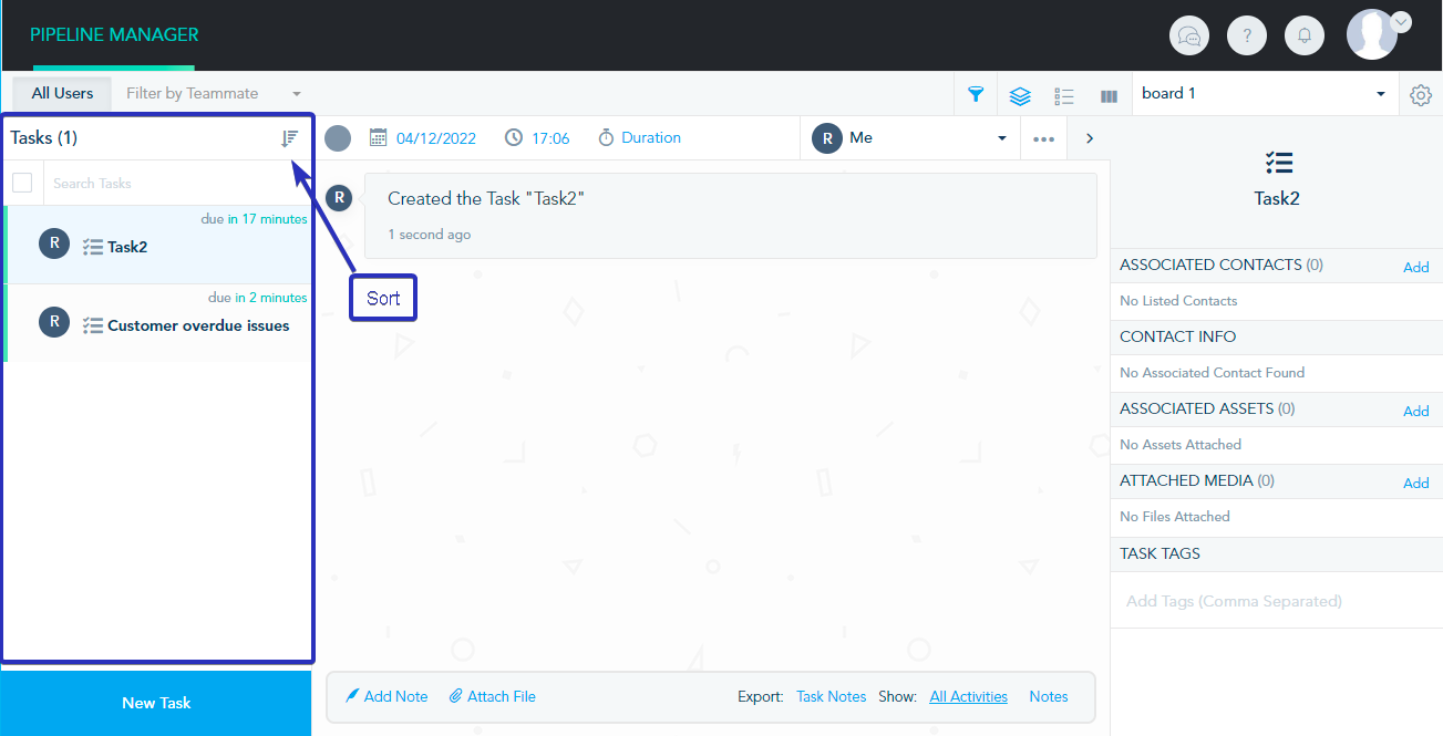 Change the order of the Tasks from Newest First or Oldest First by clicking on Sort.