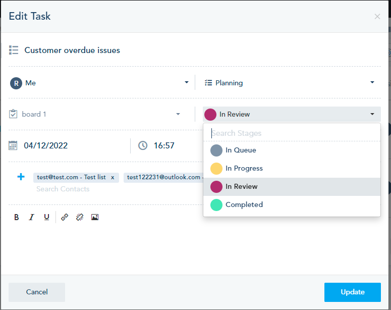 To change the stage of the task or any other details, click Edit from the Actions column of the task: