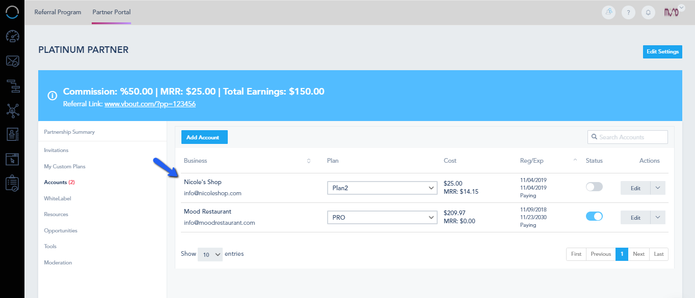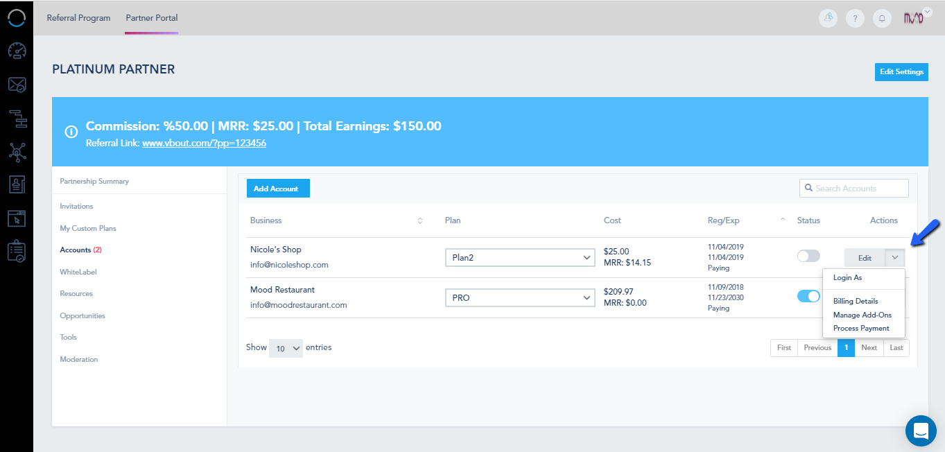 - Disable Access to Billing: Choose whether to allow the business to access its billing page or not.