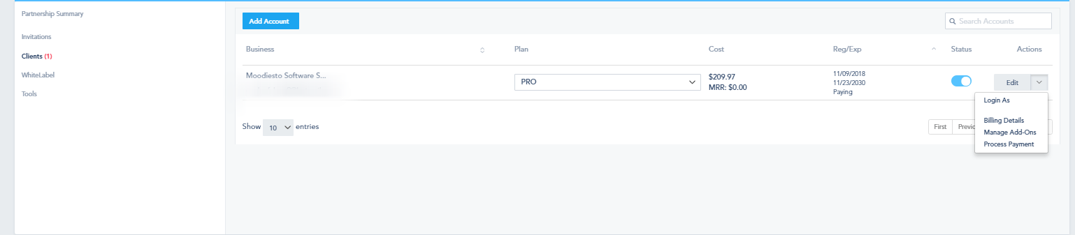 - Disable Access to Billing: Choose whether to allow the business to access its billing page or not.