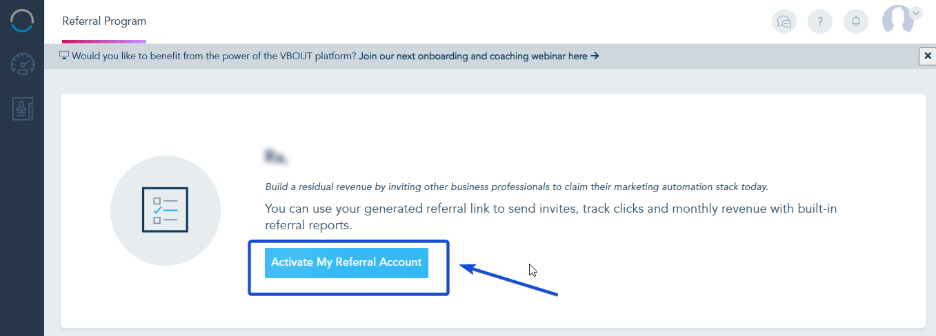You will prompt to activate your Referral program, click on Activate My Referral Account.