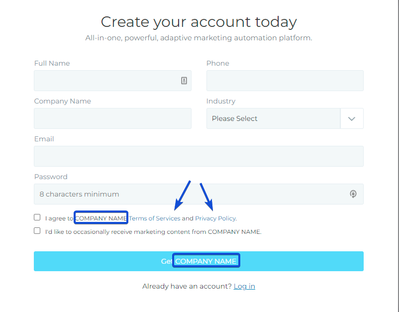 Once you edit the Partner Name and the links, they will show on the Sign-up page for your client.