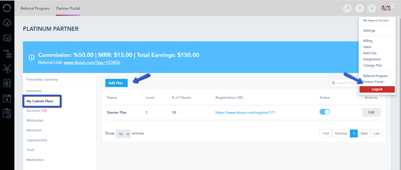 Go to Partner Portal > My Custom Plans > Add Plan: