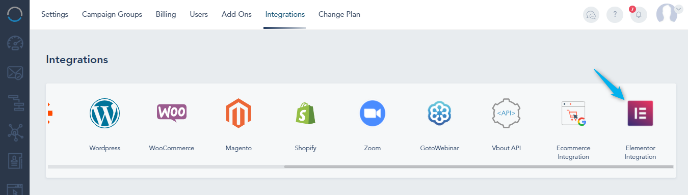 To activate the Elementor Integration, go to Integrations, and click on Elementor Integration.