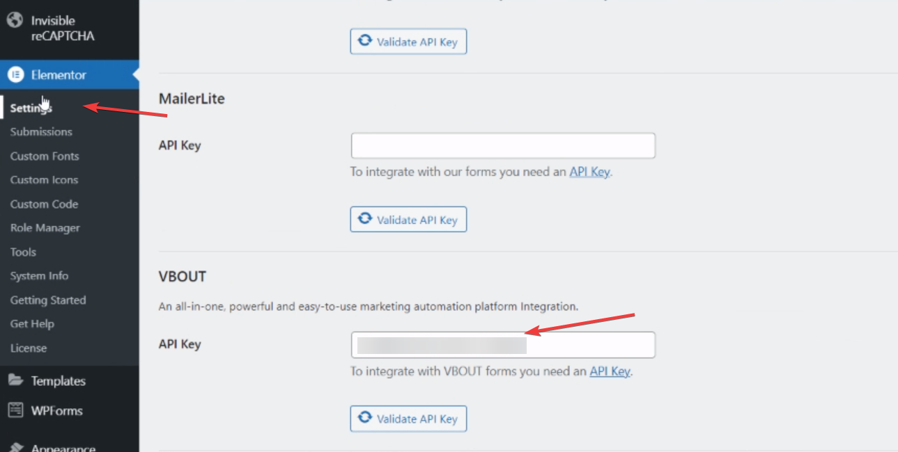 After uploading the file on Wordpress, go to Settings and add the API key: