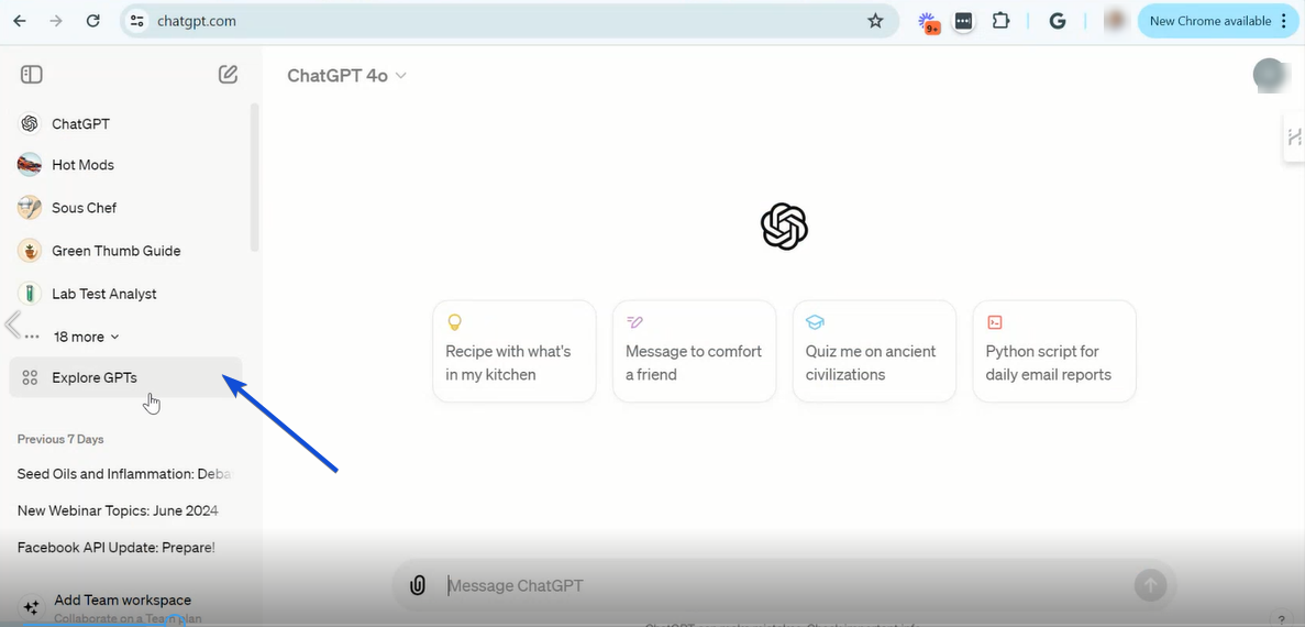 1- In your ChatGPT menu, Click on Explore GPTs.