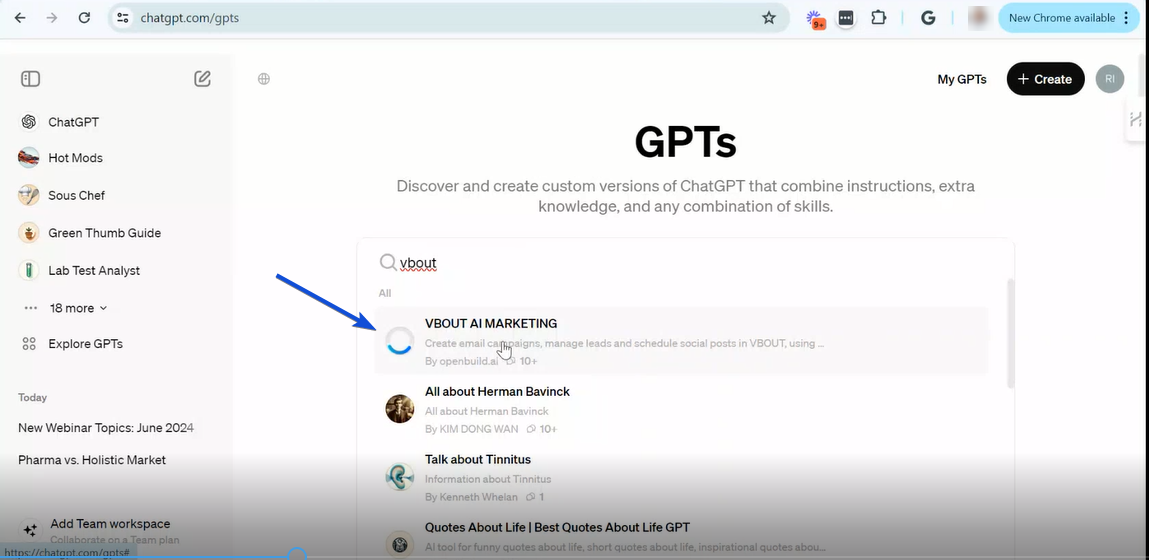 2- Search for VBOUT AI Marketing , click to add the GPT.