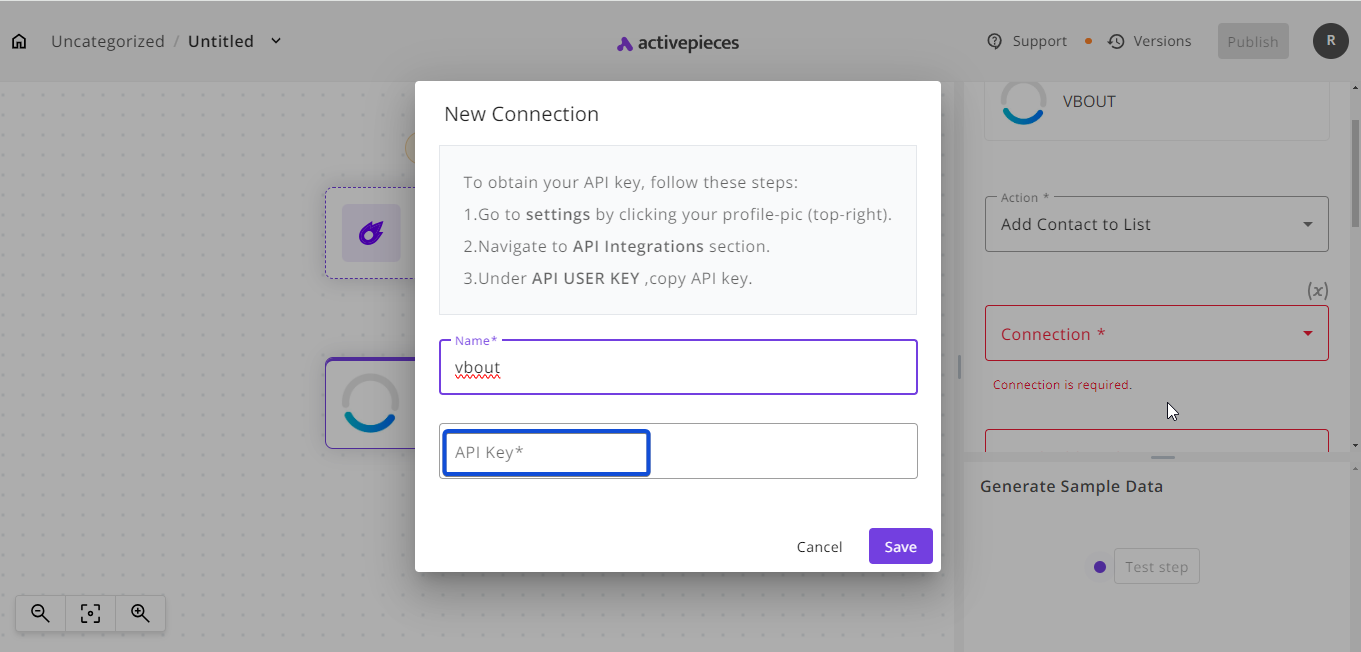 By connecting Activepieces with VBOUT, you will have the ability to integrate seamlessly with various third-party applications. This integration opens up a world of possibilities for users, allowing them to automate tasks, synchronize data, and optimize their processes across multiple platforms.