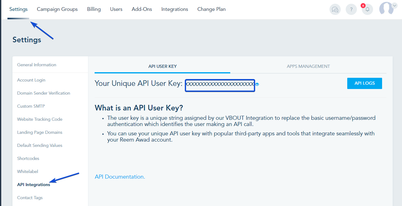 To connect your VBOUT account, you can find your API key from Settings -> API integration.