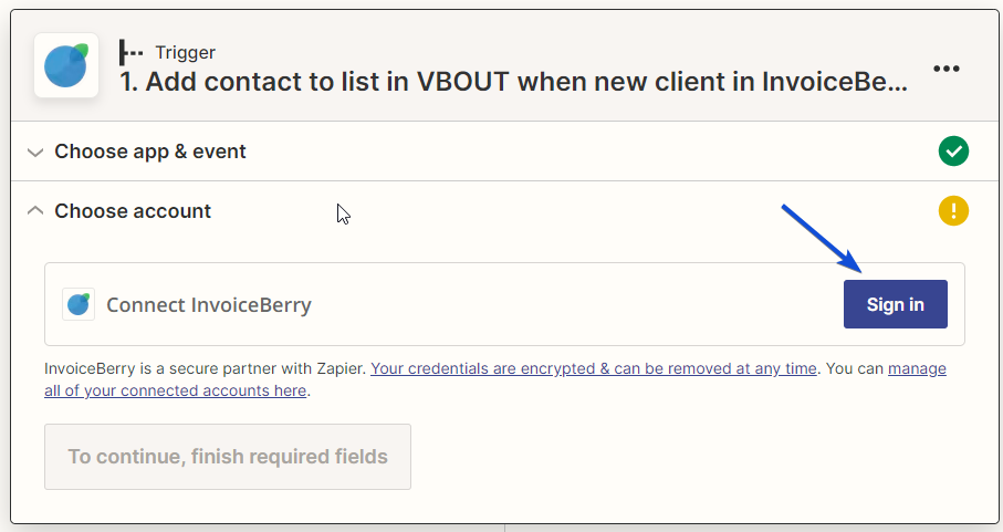 ou can sync your data in InvoiceBerry to your VBOUT account using Zapier by following the below steps:
