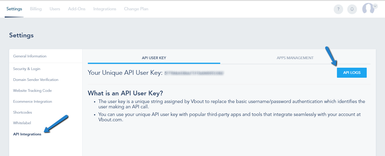 The platform offers a variety of API tools for you to integrate your app with us. To find your API key, while logged in to your dashboard: