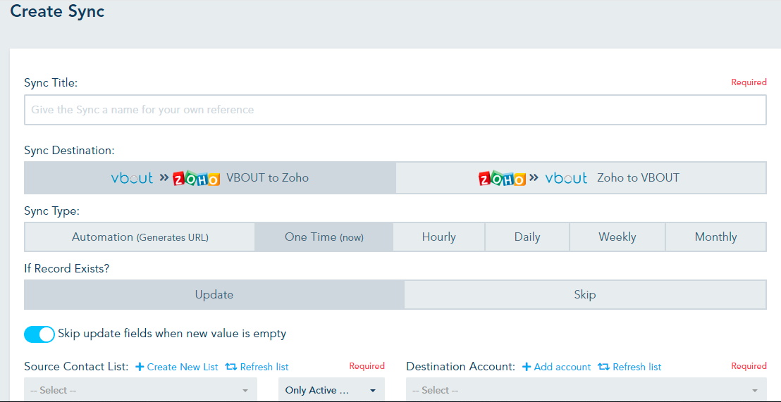 The sync is bi-directional and can be customized as a one-time, recurrent or part of an automation at the contact level: