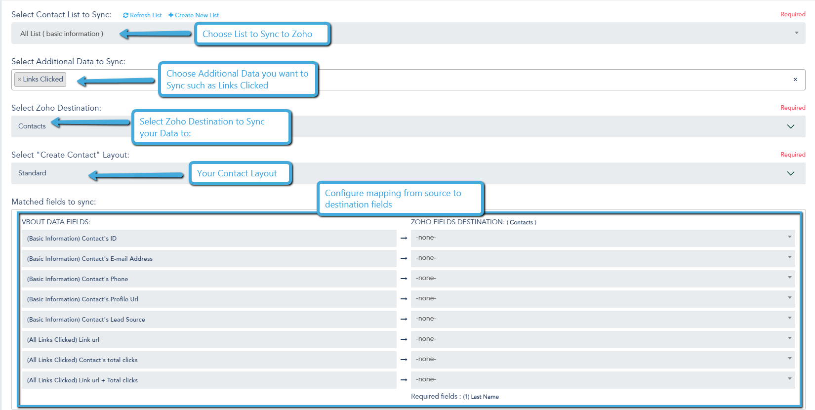 You can connect one or multiple Zoho accounts into your dashboard and start creating sync instances for the following objects:
