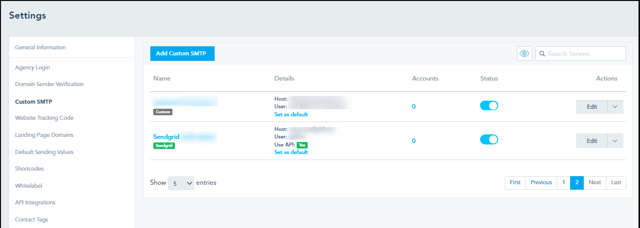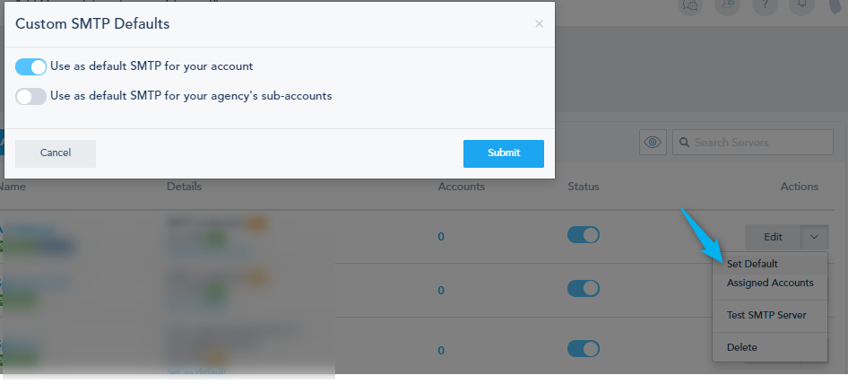 If you have an agency account and are using the Custom SMTP, you will have 2 choices for the default SMTP: