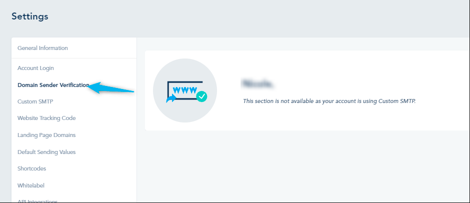 If you set up a Custom SMTP as default, you won't have any domains under Domain Sender Verification: