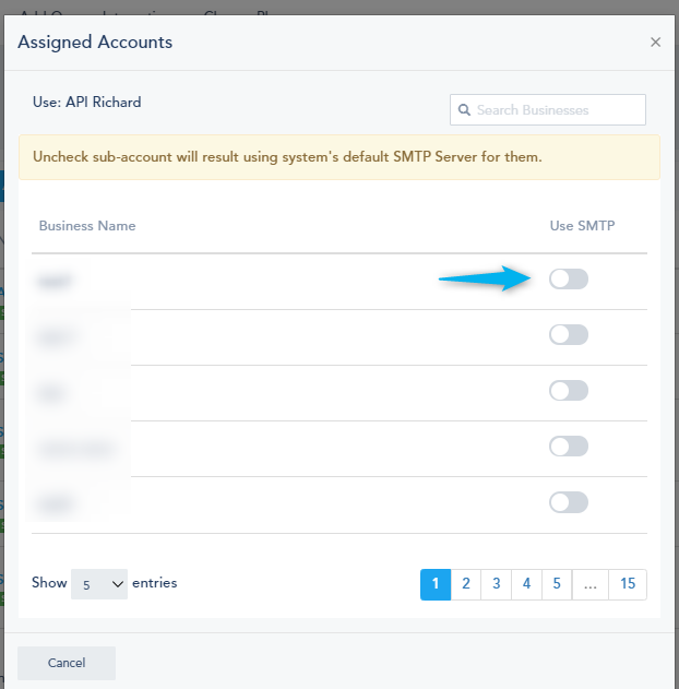 You will see all your accounts and choose which ones to assign to the Custom SMTP: