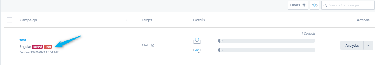 If you don't use a verified sending email and send the campaign, it will be paused with an error: