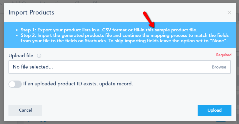You can add products manually or mass import them by following the sample given: