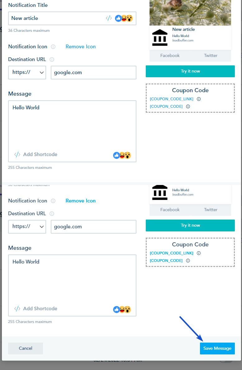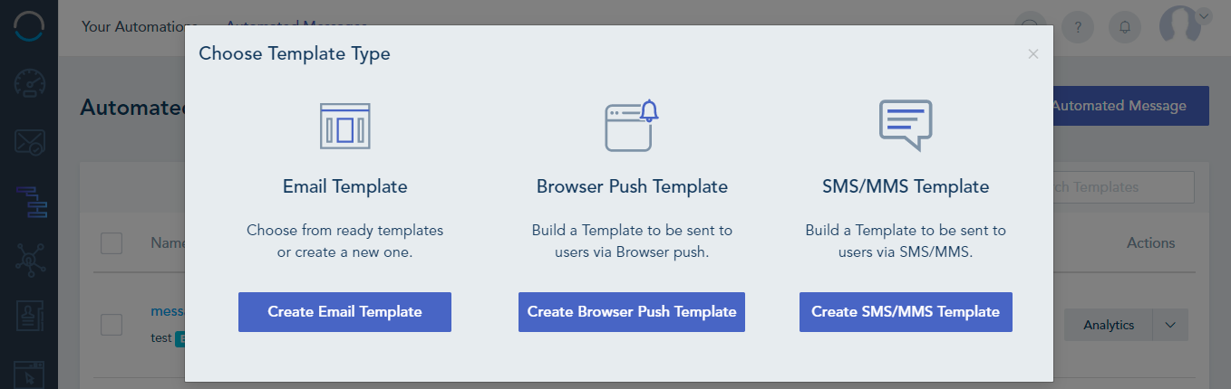 - Go to Automated Messages, click on Create Automated Message > Create Browser Push Template.
