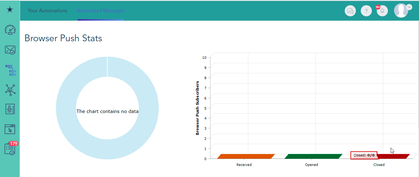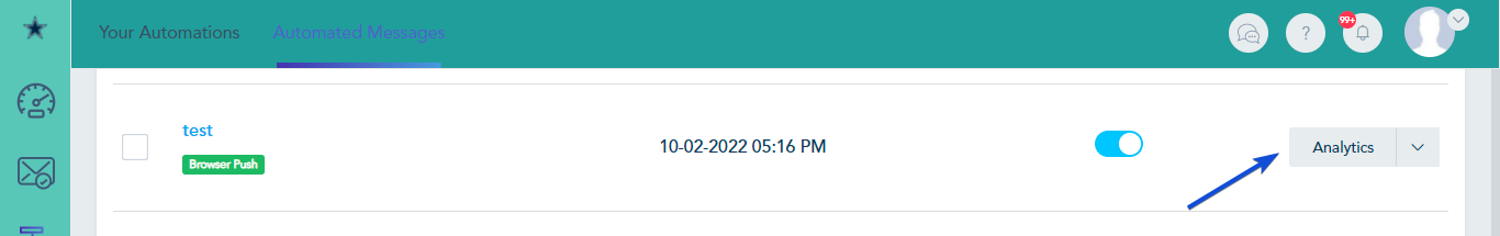 - You can see full analytics on each automated Browser Push message added to a workflow. You can access them under the Analytics portion of your Automated Messages.