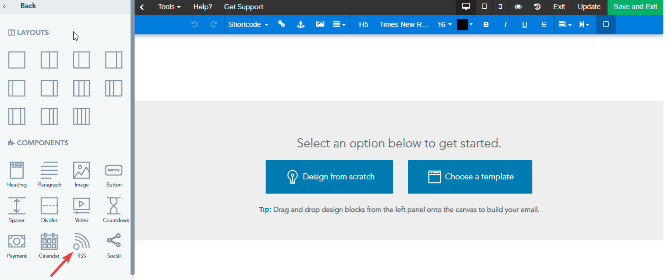 RSS feeds blocks are used to insert your feeds in your landing page or email template, and their content will change dynamically once your feeds are updated.