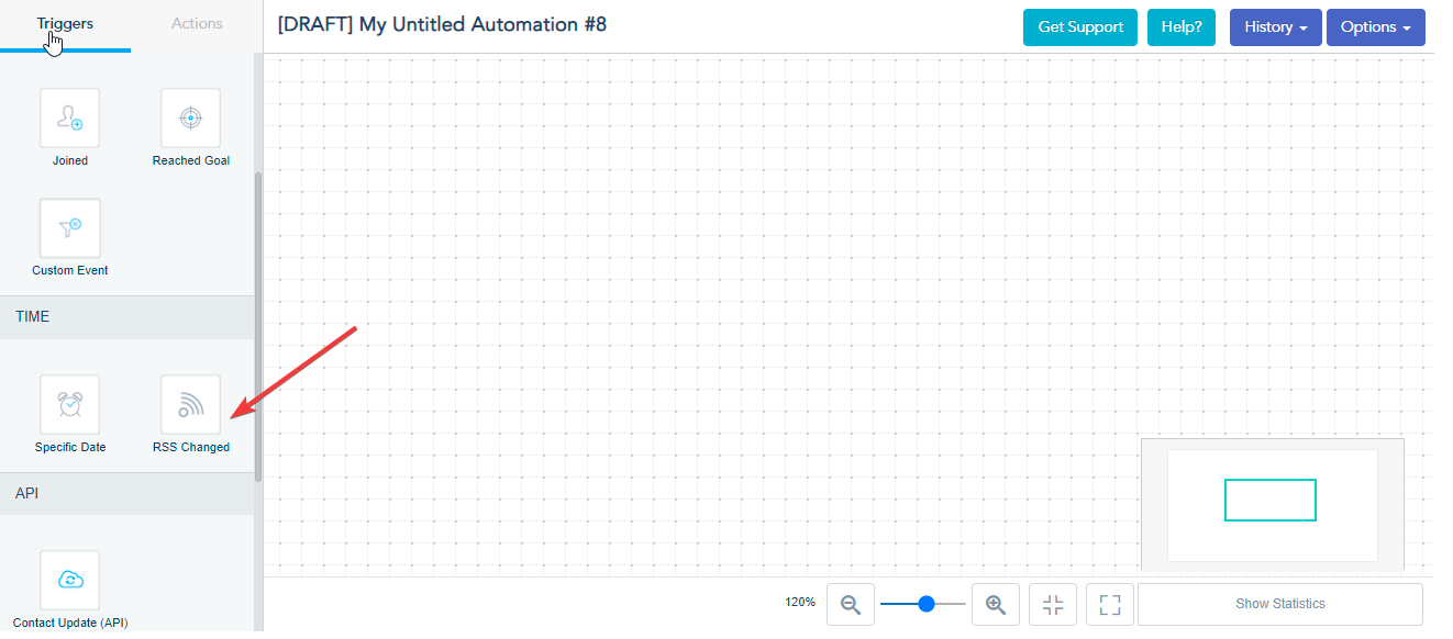 Go to Automation tab, create a new automation, from the trigger section, Drag and Drop the RSS Changed trigger.