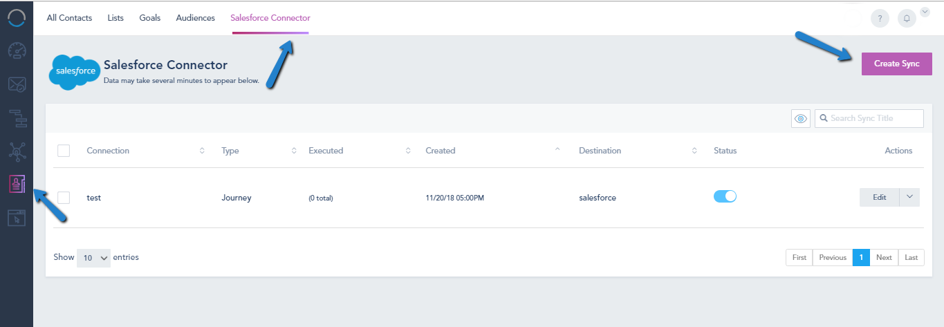 To access the integration tab for Salesforce, go to: Contacts > Salesforce Connector