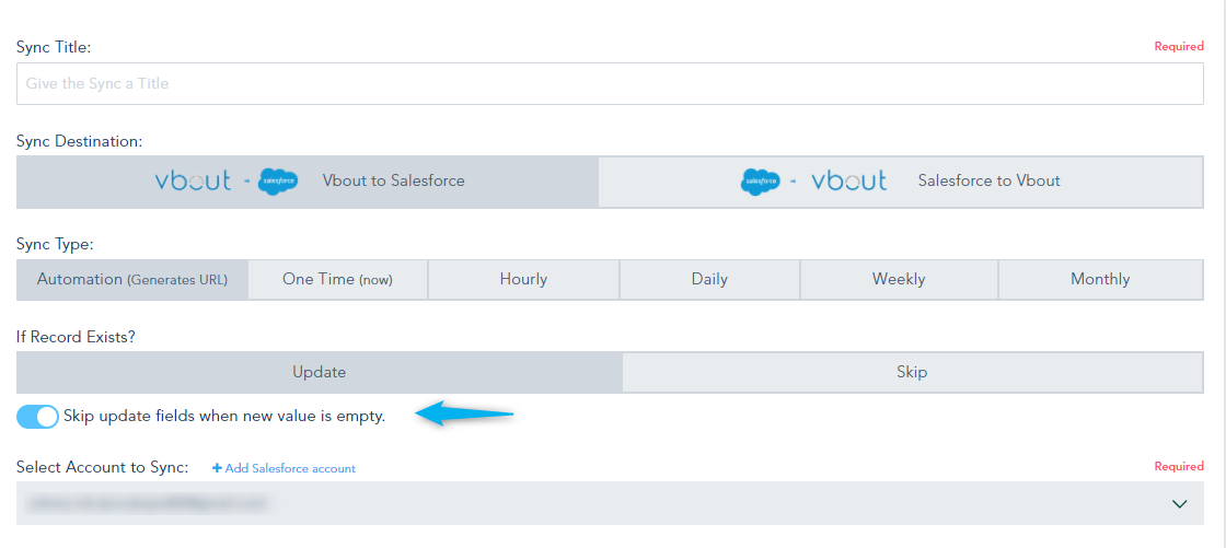 If you want to update an existing record, and not override an empty field, toggle this option: