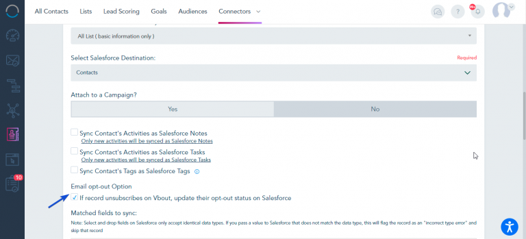 Also, you have the option to sync unsubscribe contacts and update their opt-out status in SalesForce.