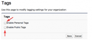 2- Select Enable Personal Tags and Enable Public Tags to allow users to add personal and public tags to records. Deselect both options to disable tags.