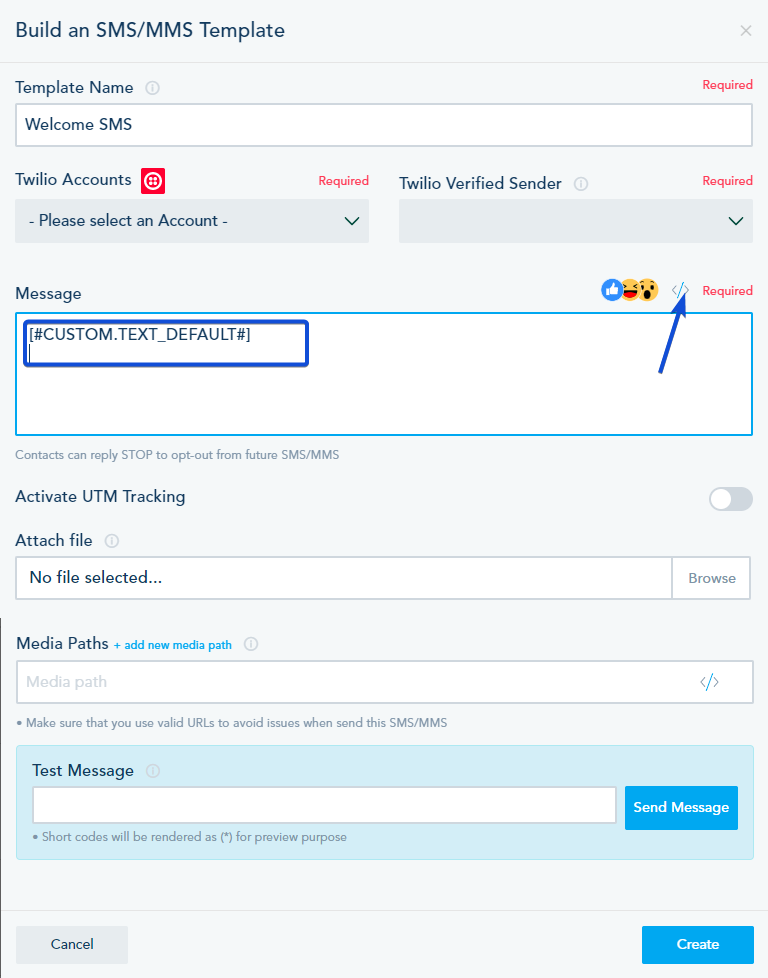 In SMS template: