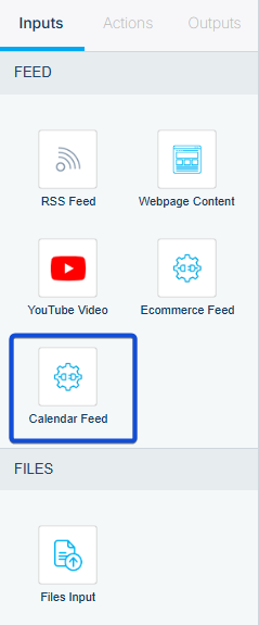 To enable calendar functionality in your chatbot, select Calendar Feed as the input source within the chatbot workflow. This allows the chatbot to display calendar details, show available time slots, and support booking, rescheduling, and cancellation actions.