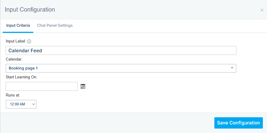 In the calendar feed configuration, select your calendar and set a date/time to launch the learning process.