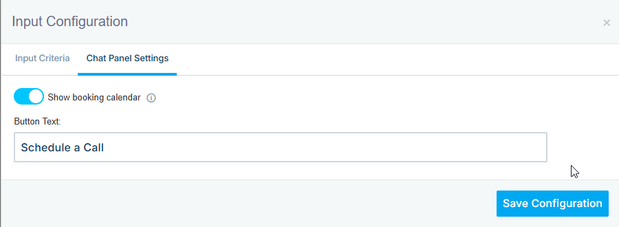 In the Chat Panel settings, you can enable or disable the Show Booking Calendar option. This setting is enabled by default and displays availability for the next five days.