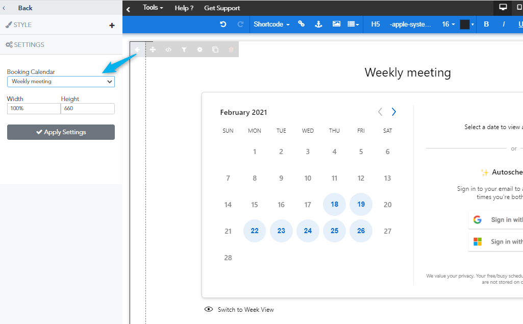 After choosing the Booking Calendar click on Apply Settings and that's it.