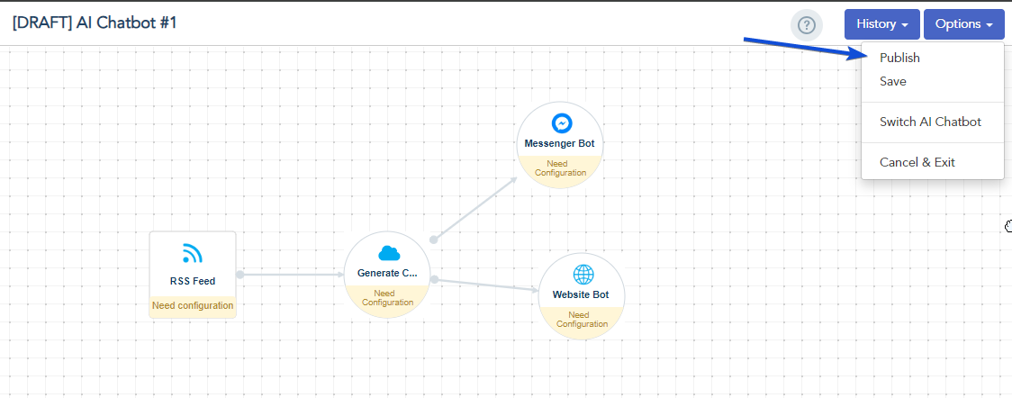 Once your Chatbot setup is complete, Click on "Publish" to make it live.