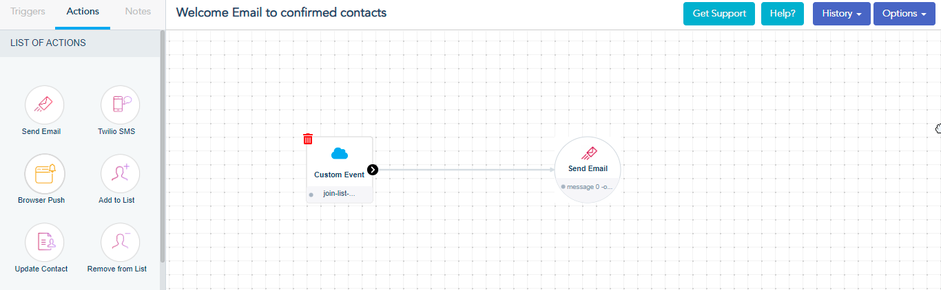 In case, you have turned on the Email confirmation option (double opt) in your List, you can start sending emails to your contacts upon confirmation using Automation.