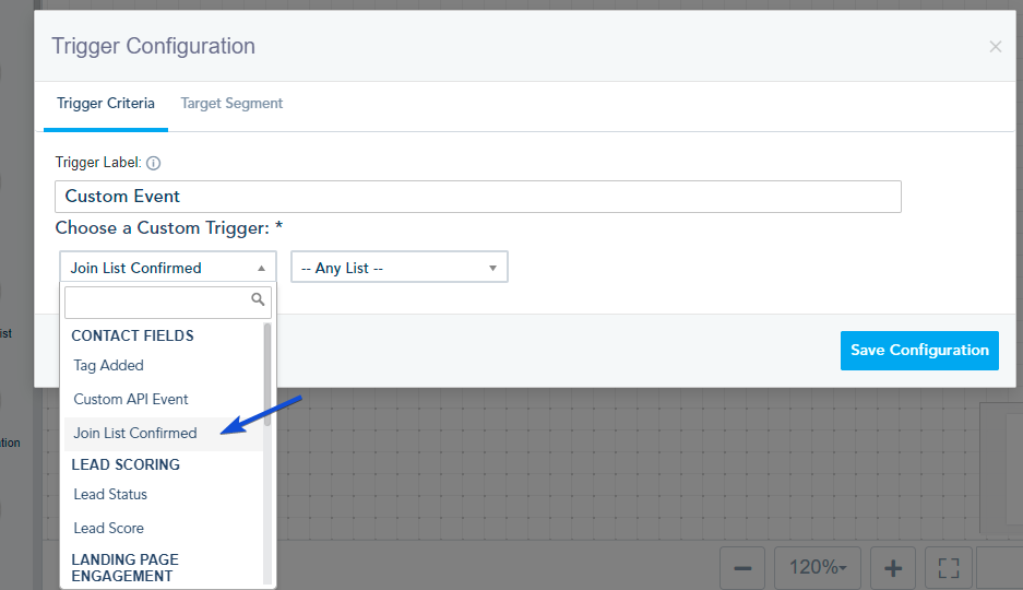 In your trigger configuration, choose the Join List Confirmed trigger and the list you want to check for confirmation.