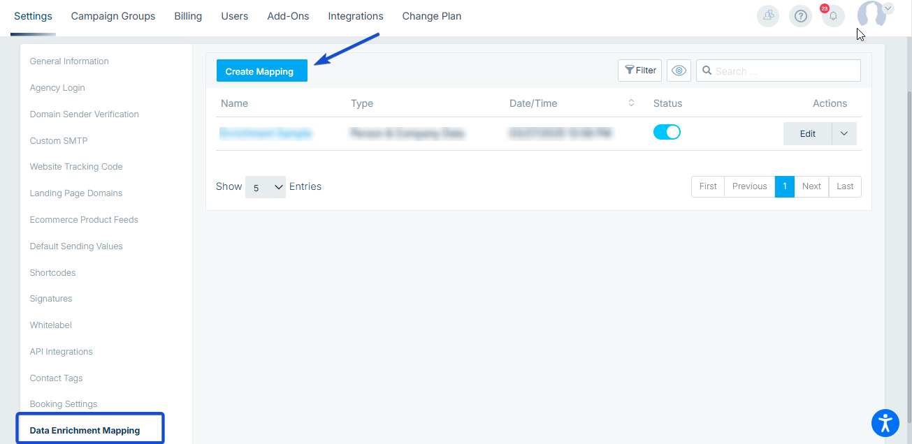 - Go to Settings, scroll down to Data Enrichment Mapping.