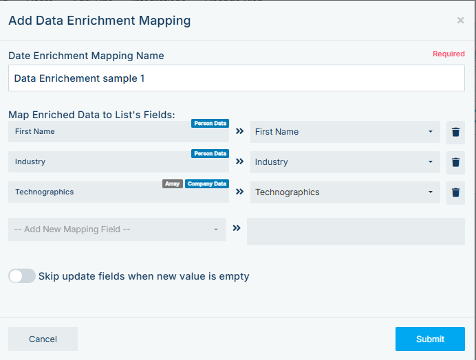 You can control how enriched data updates your existing custom fields using advanced mapping.