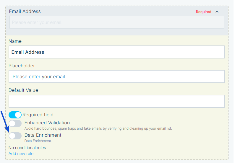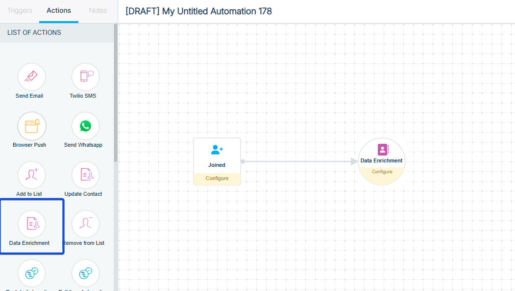 In Automation, you can use Data Enrichment as a condition to segment your contacts based on enriched fields.