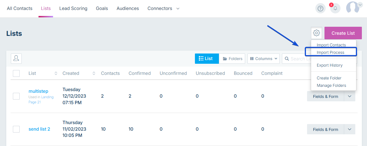 NOTE: When uploading multiple lists simultaneously, imports are processed in the order they were submitted from the oldest to the newest.