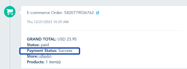 Locate the payment status by checking the E-commerce Order activity of the client.
